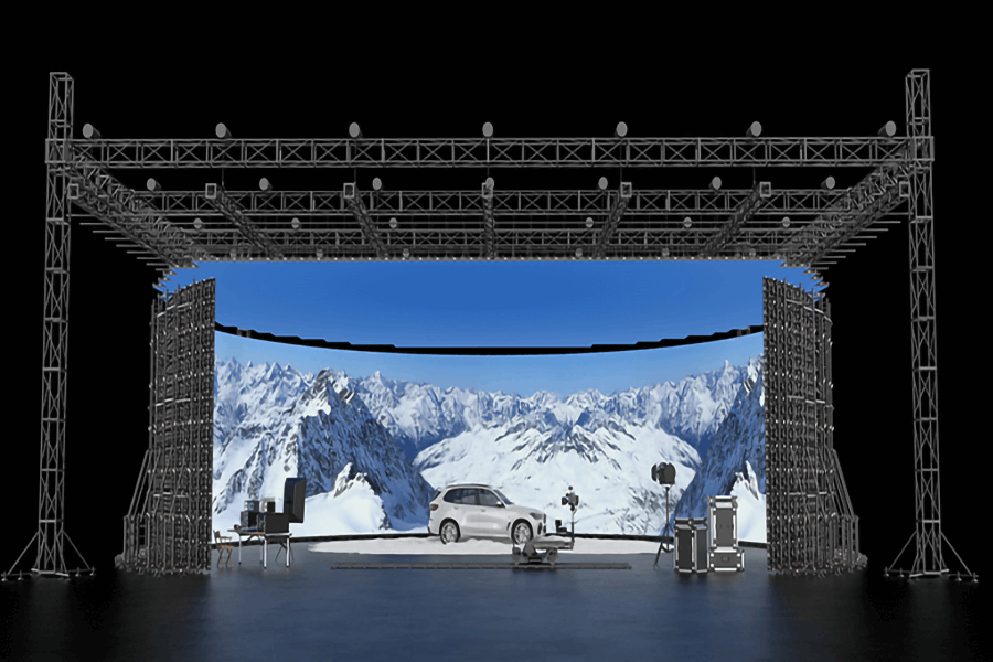 Trong bối cảnh studio ảo, cấu trúc xây dựng của màn hình hiển thị LED thường cần được xác định kết hợp với các yêu cầu cụ thể của dự án. Theo phép đo nội dung sản xuất ảo, bạn có thể chọn một màn hình LED duy nhất hoặc bạn có thể chọn kết hợp giữa Màn hình LED và màn hình LED sân khấu sàn nhảy hoặc màn hình LED bầu trời.
